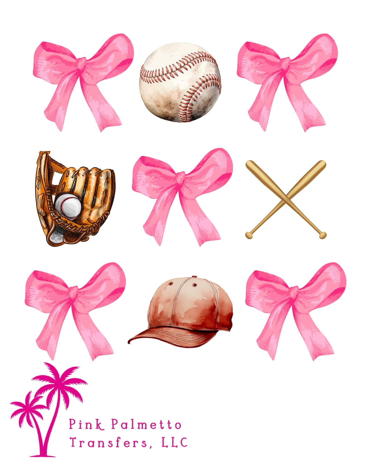 Baseball and Bow 12" DTF Transfer