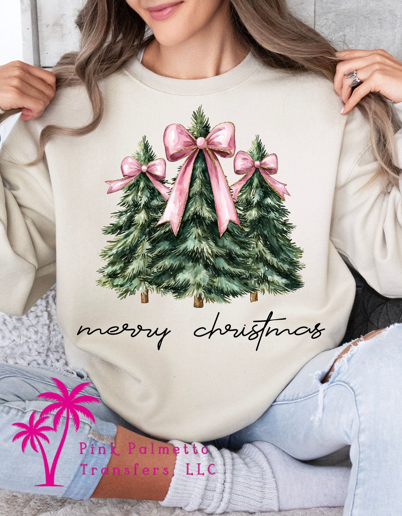 Merry Christmas Pink Bow Tree Sweatshirt